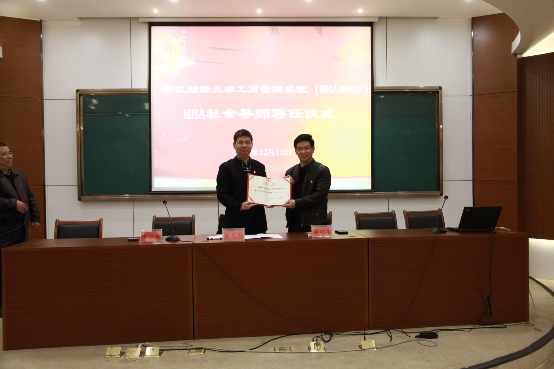 作为世界五百强企业的高级管理者,高书记有着丰富的实践经验,在党建与业务融合方面更是有着独到的见解。活动现场,学院院长董进才为其颁发了MBA社会导师聘书,开启了双方友好合作的第一步。