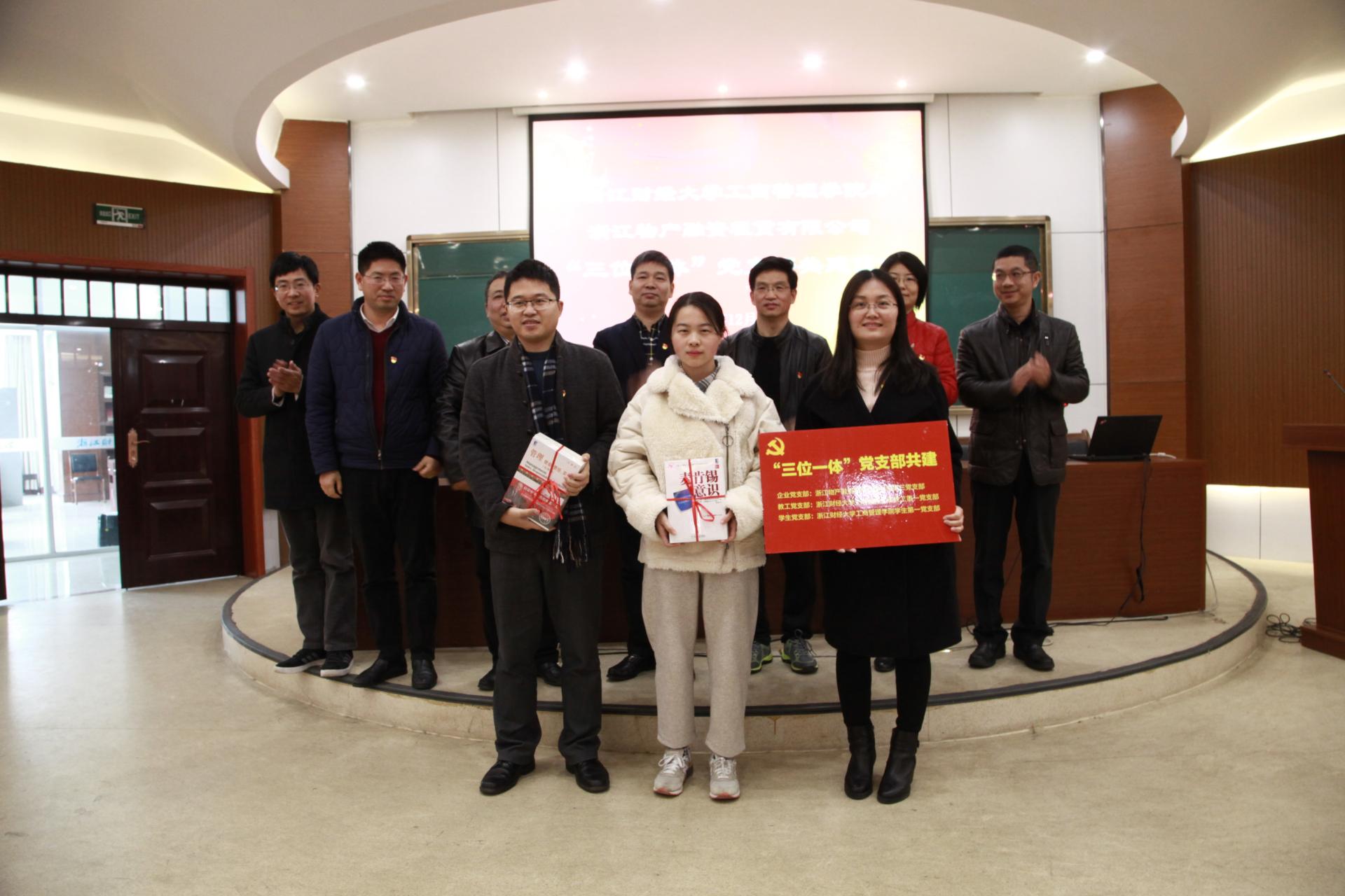 为更好地推进共建活动,双方党委分别确定了各两家企业支部、教工支部和学生支部,组成了两组“企-师-生”三位一体的基层组织建设共同体,开展试点工作。各支部代表上台举行了结对仪式,企业支部还向学院支部赠送了书籍。