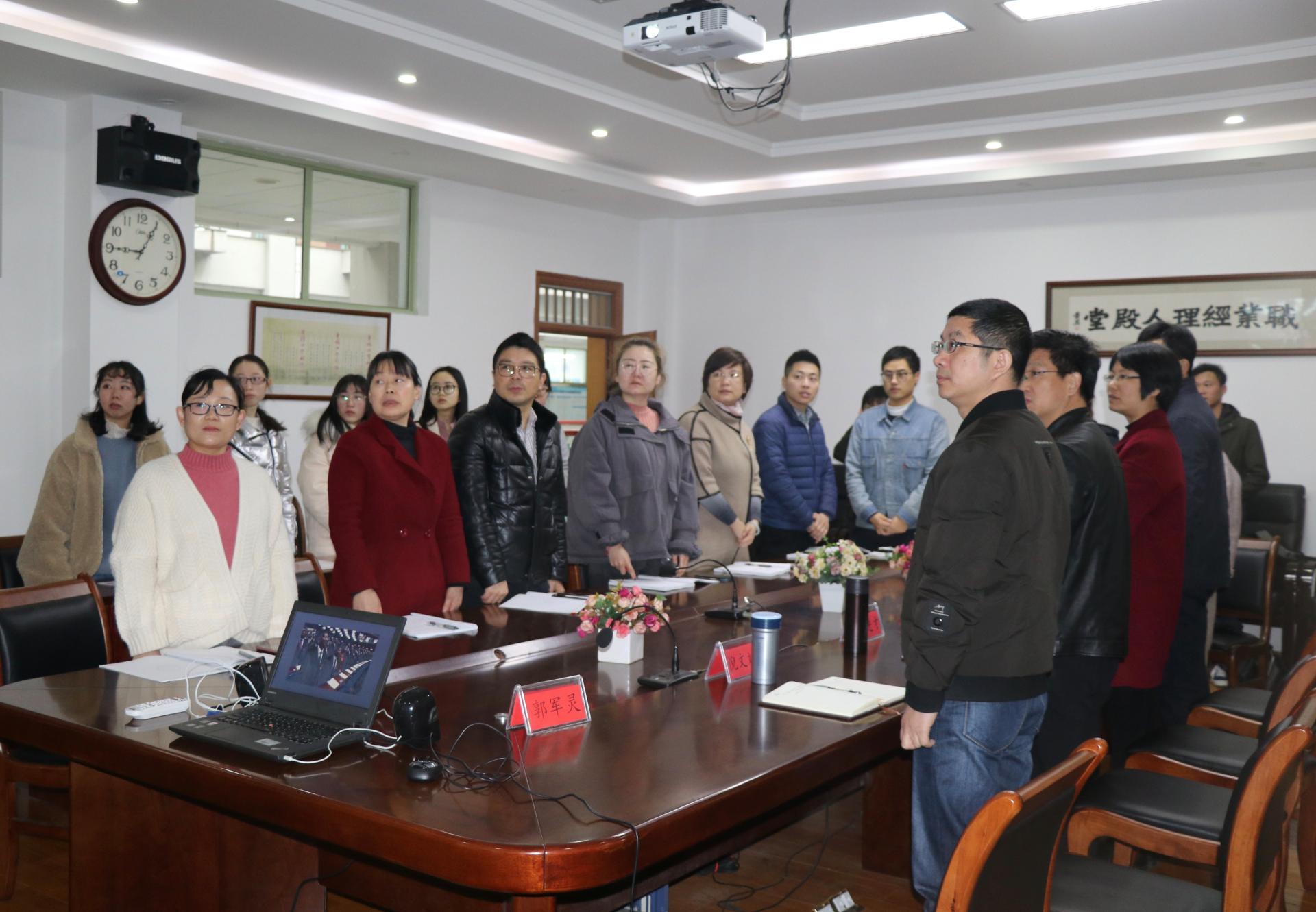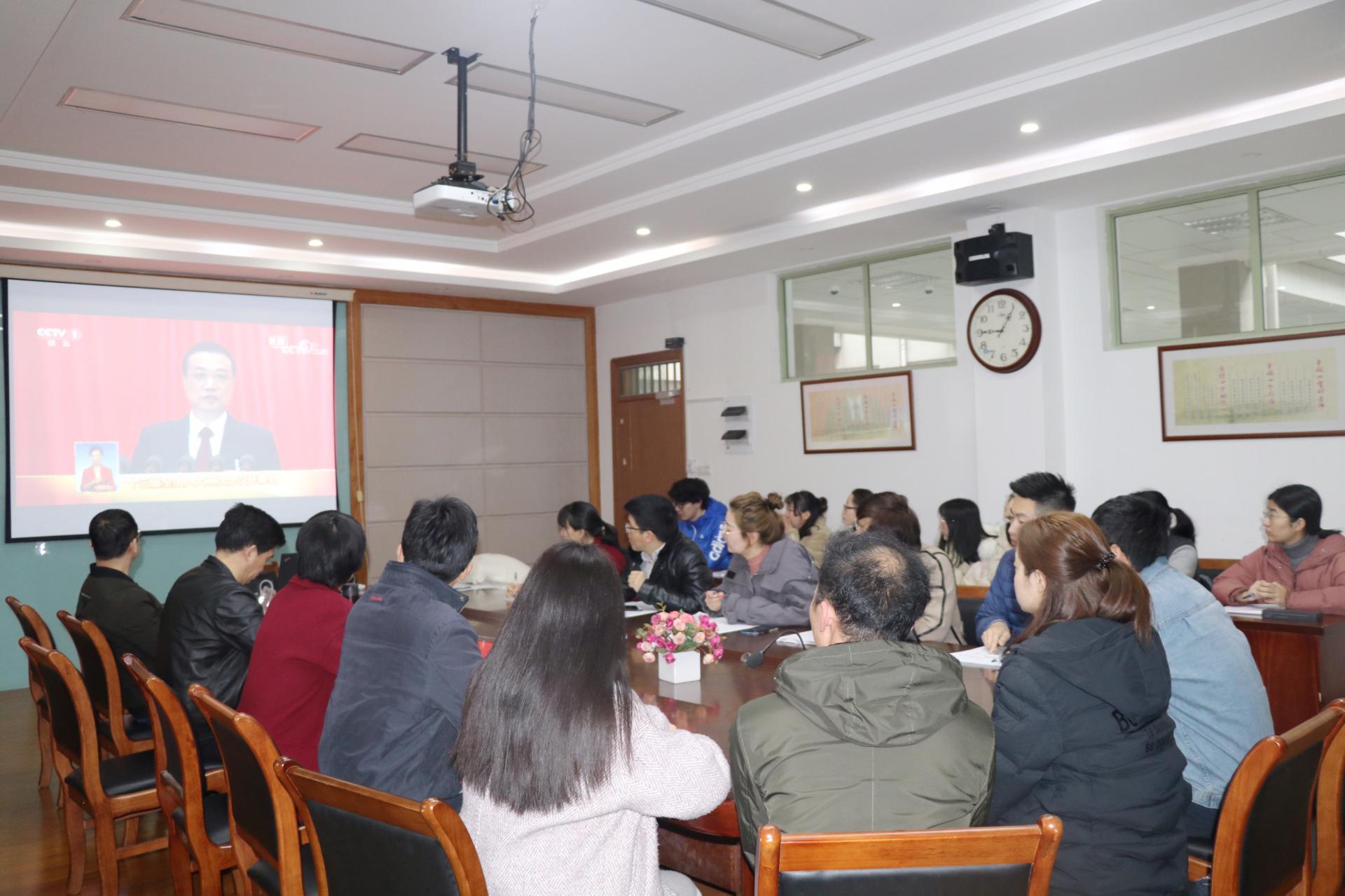 党委组织教工党员、学生党员齐聚一堂,在学院楼410会议室观看了第十三届全国人民代表大会第二次会议开幕式直播。学院党政领导班子出席观看。