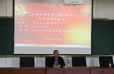 党委特邀财政税务学院教师党员、财大十佳青年童幼雏老师为全院教师党员进行经验分享。会议由学院党委书记黄卫华主持。