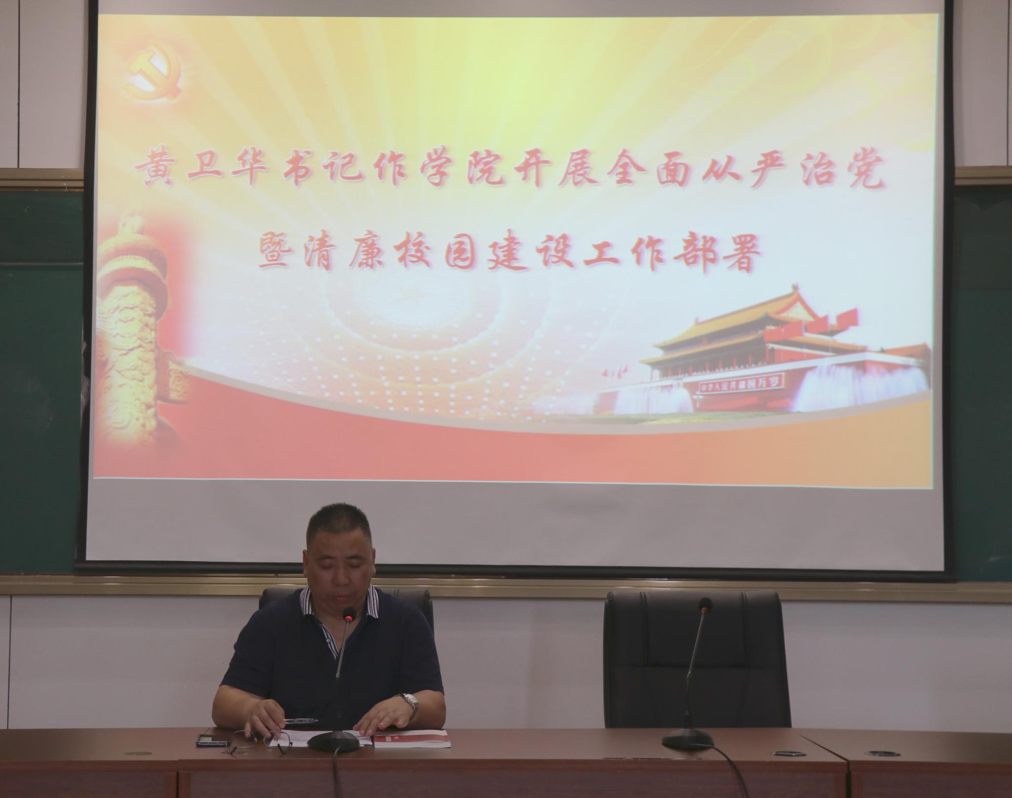 党委在学院楼217报告厅召开了2019年全面从严治党暨清廉校园建设工作会议。学院领导班子、全体教职员工参加了本次会议。会议由院党委书记黄卫华主持。
