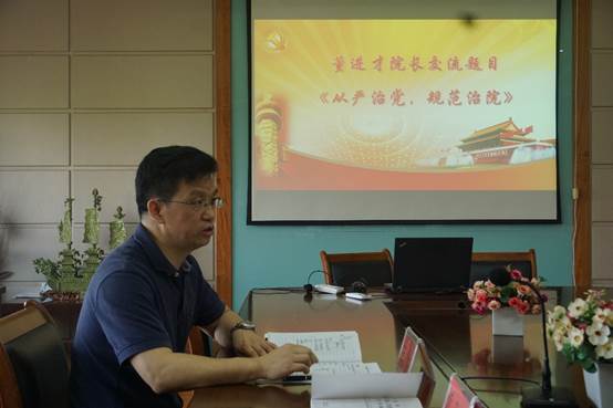学院院长、党委副书记董进才围绕《坚定不移推进全面从严治党》一文,从“从严治党,规范治院”角度进行交流。他强调,要深入学习习近平总书记系列重要论述,在学院落实“党要管党、从严治党”中,党员领导干部要做到如履薄冰、如坐针毡、如临深渊、如临大敌,要高度重视廉政风险排查中出现的各项问题,规范治理学院各项事务,始终保持对党的忠诚心、对人民的感恩心、对事业的进取心、对法纪的敬畏心。