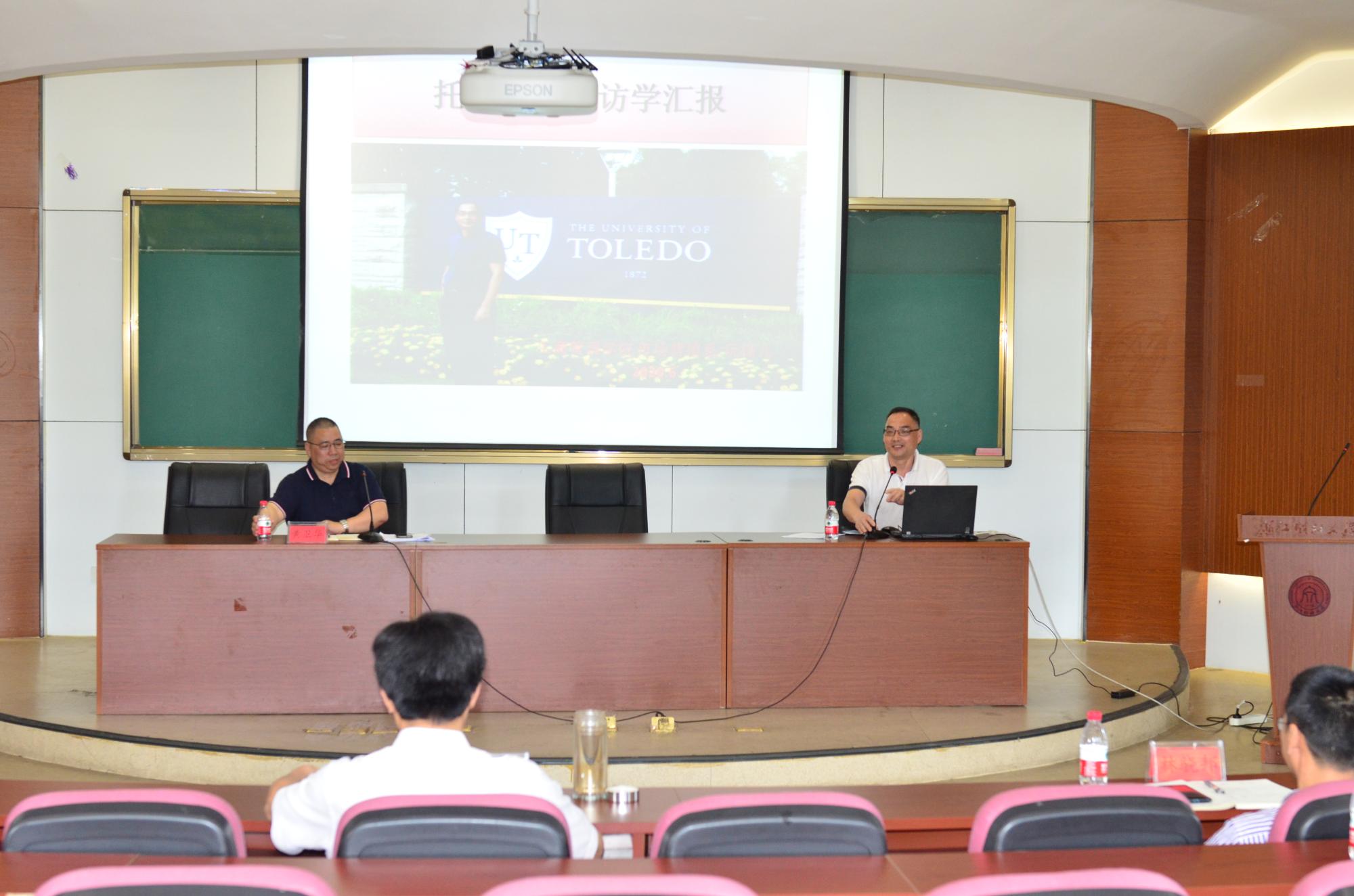 在5号学院楼二楼报告厅开展“现场同期声”主题党日活动。学院党委邀请从国外访学归来的三位教师依次上台给大家做了在国外访学期间的所做所闻所感报告会。学院全体教工党员参加了会议,会议由工商球神直播