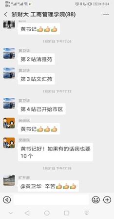 “书记,如果口罩够,我想要几个。我在清雅苑。”“书记,我需要口罩。我在城西,能否快递?”一条条来自学院群里各位老师迫切需求的信息,让黄卫华这名老党员拿起车钥匙,扛起装满口罩的箱子就走出了家门。从下沙到市区,从金沙学府-清雅苑-文汇苑-采荷人家-高教新村……一路向西;自驾车80多公里把口罩一一送到各位老师手上。顾不上寒暄、顾不上休息,从下午五点一直到晚上八点半,送口罩的黄书记一直在路上。