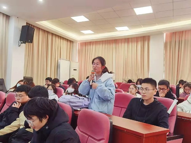 到了报告提问环节,21级的同学们都积极地向费海炳校友提出自己关于专业学习方面的一些疑问,费海炳校友也十分热情地替大家做了相应地解答。