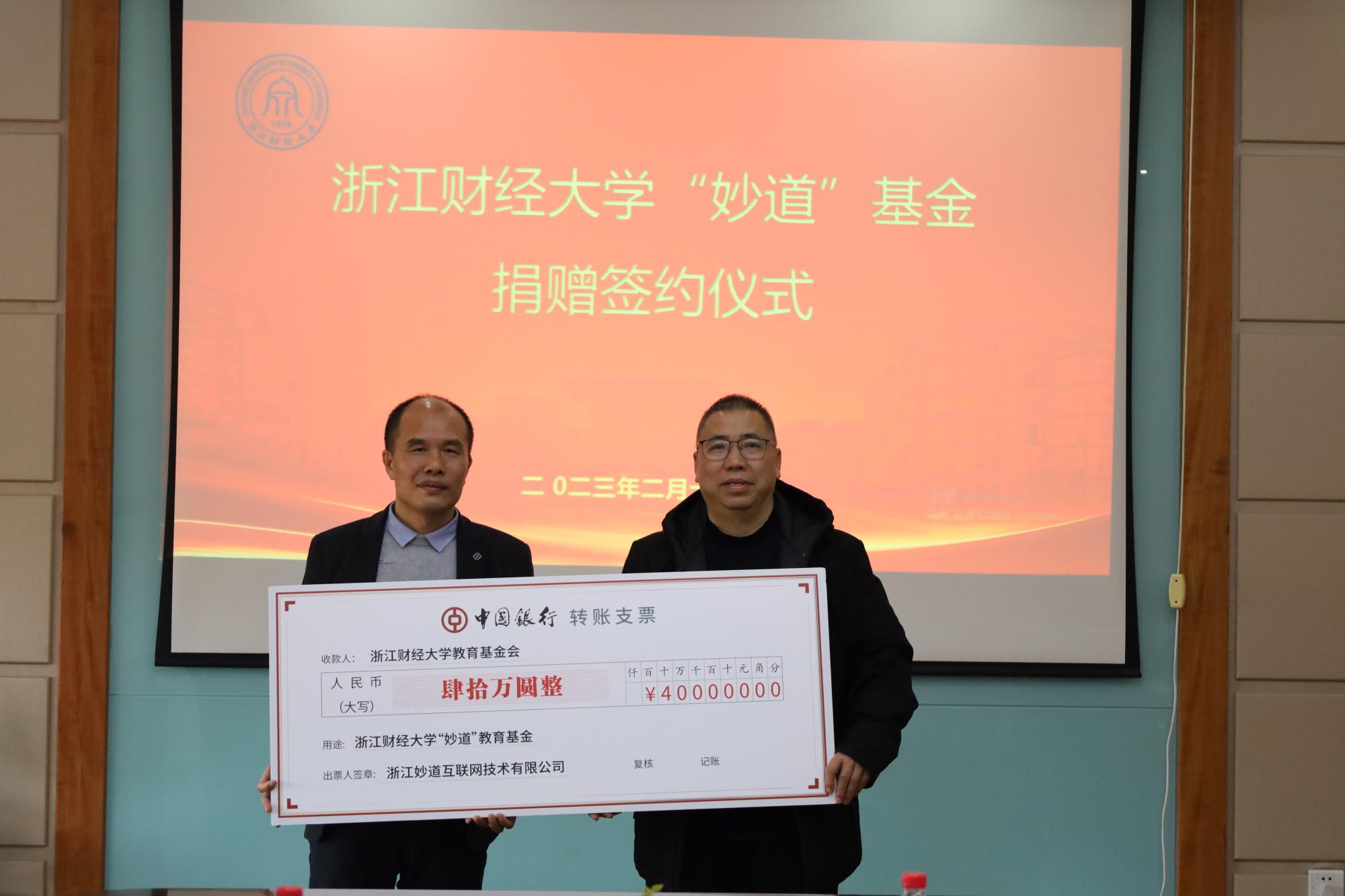 2月17日,浙江财经大学“妙道”基金捐赠仪式在我校下沙校区举行。浙江妙道互联网技术有限公司向工商球神直播