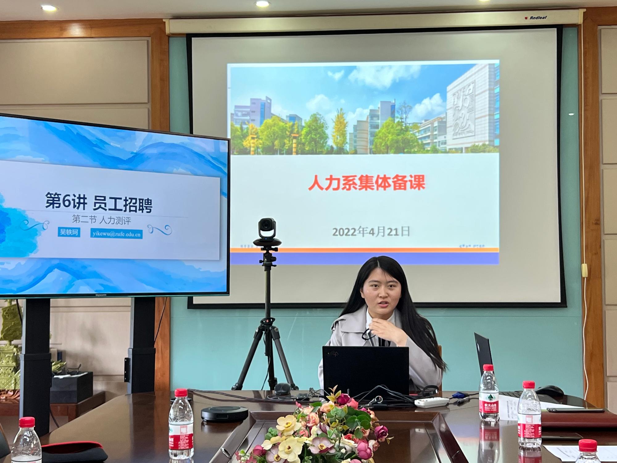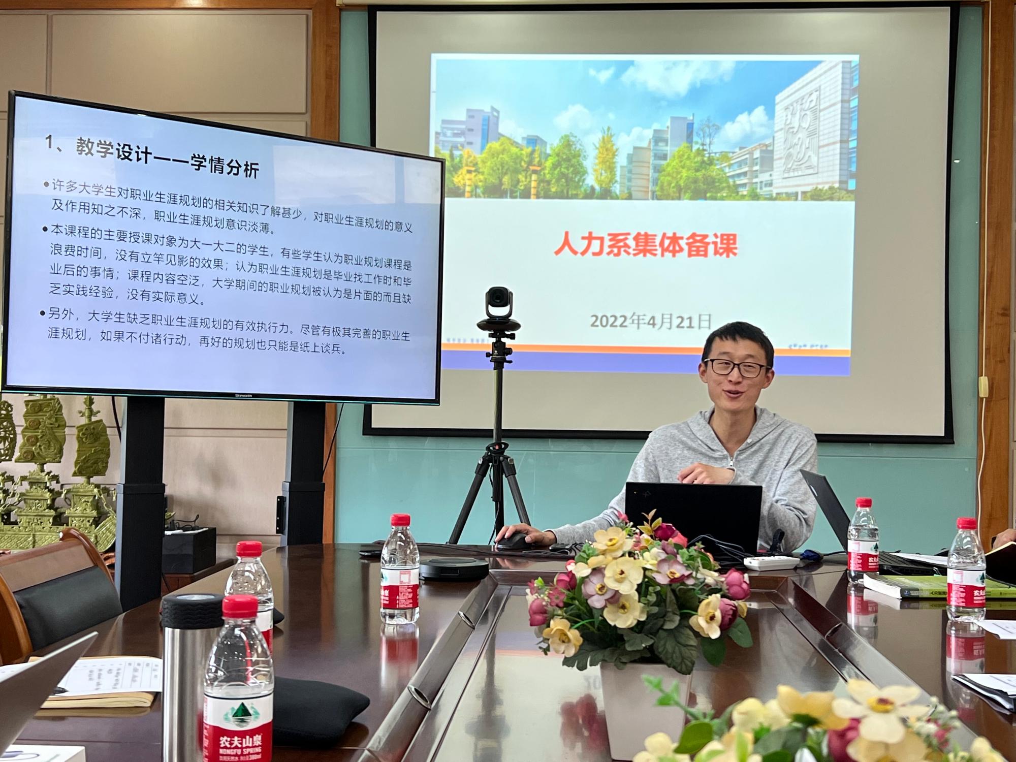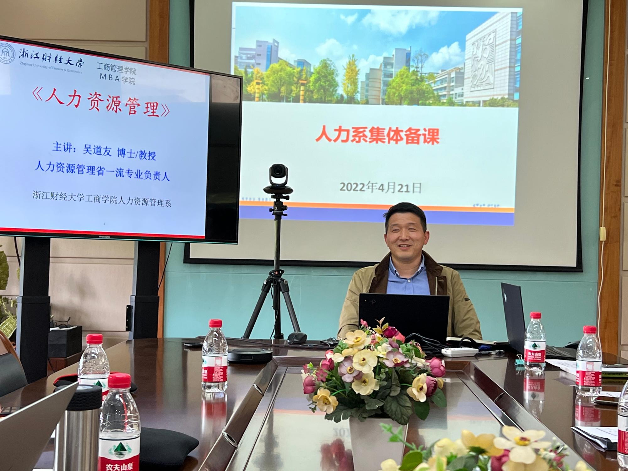 《人力资源管理》的课程负责人吴道友老师对课程的教学目标、教学内容、教学方式进行了介绍。吴道友老师还基于以往教学经验进行深刻的教学反思,并提出《人力资源管理》课程与学生技能考核相结合的课程建设新方向。