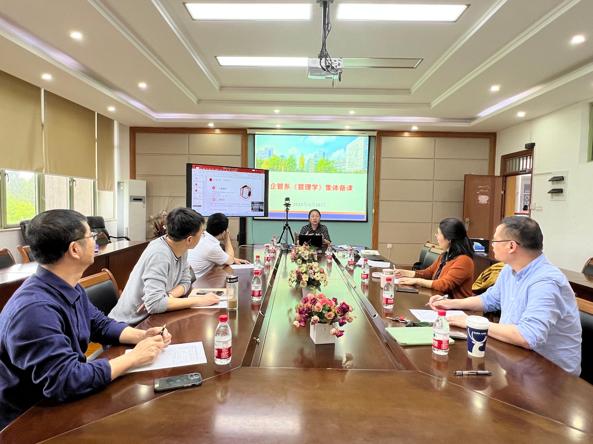 4月26日下午学院5410会议室,企业管理系《管理学》课程组开展线上线下同步集体备课活动。本次活动旨在加强课程组团队建设,进一步明确教学目标、教学理念和教学方法,以提高课堂教学质量水平。《管理学》课程组吴丽民、包兴、孙凯、尤利群、孔小磊、倪文斌等老师线下参加,林与川、罗兴武、颜涛、唐春晖、张维维、洪雁、吴军、周丹、贺锦江、赵雨菡等老师线上参加,教学办赵红老师参加了本次活动。