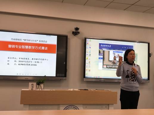 2018年3月27日,市场营销系以《营销专业智慧教学方式漫谈》为主题展开教学研讨沙龙活动,市场营销系主任陈颖副教授担任沙龙活动主持人。