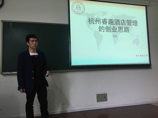 2018年4月16日下午企业管理系包兴老师邀请了杭州睿趣酒店管理创始人郑浩先生为本科生分享了一场精彩纷呈的商技课程。