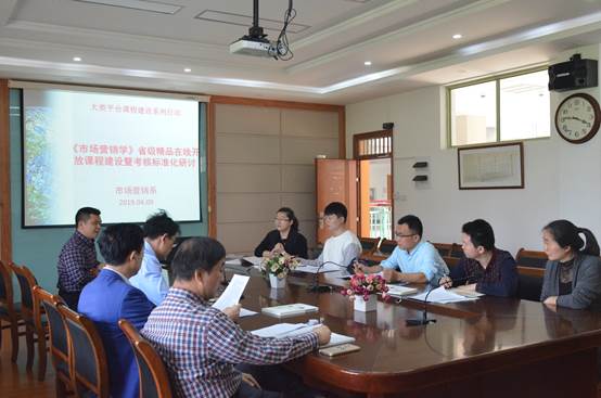 楼410会议室召开第六届《市场营销学》课程教学研讨会。本次课程研讨会主题为:《市场营销学》省级精品在线开放课程建设与考核标准化。本次课程研讨会旨在加快《市场营销学》大类平台课程建设和省级精品在线开放课程建设,同时将课程的标准化考核落到实处。研讨会由《市场营销学》课程负责人郭军灵副教授主持。