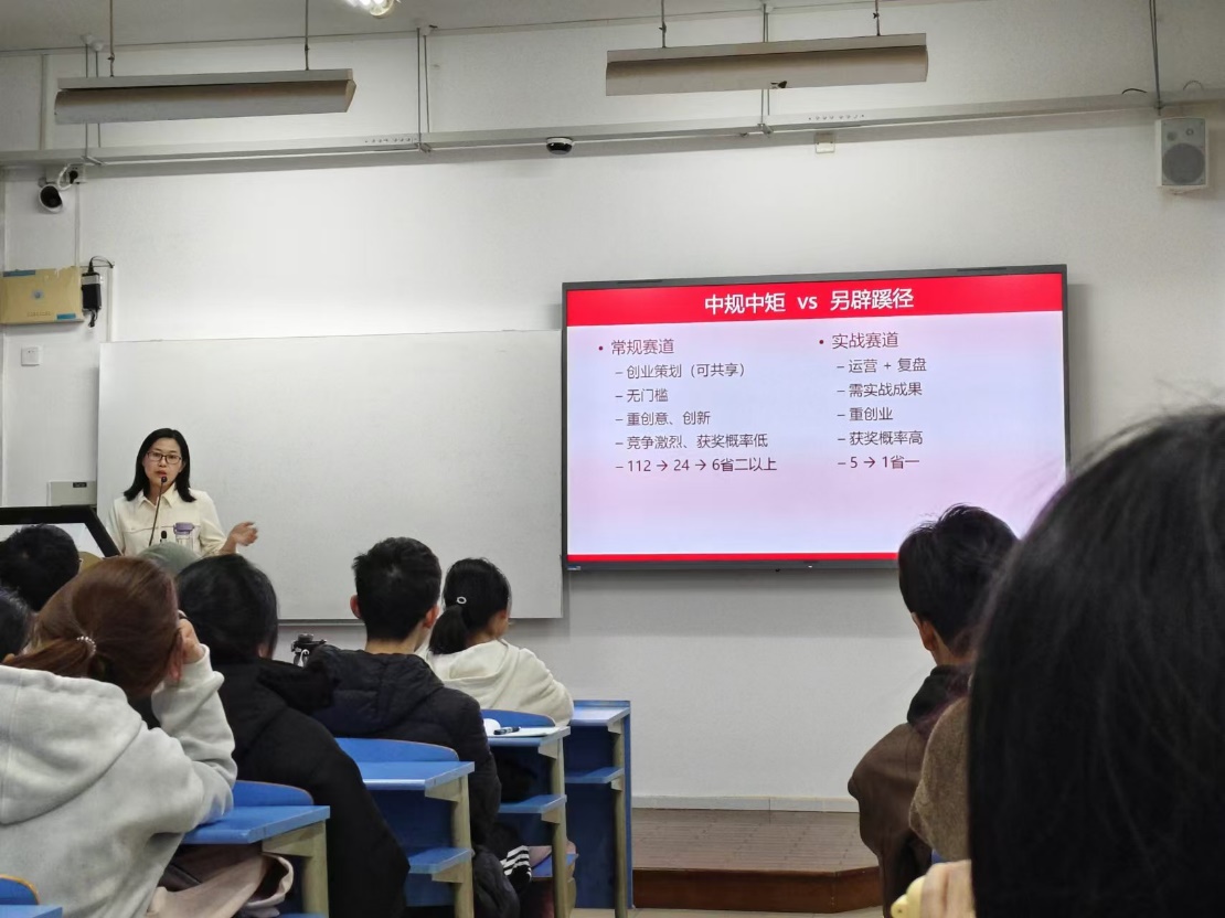 第二十届电子商务竞赛启动大会暨宣讲会在B301教室顺利举行。程小英老师应邀主讲,并由王鲁老师总结,讲座由电子商务协会协办。