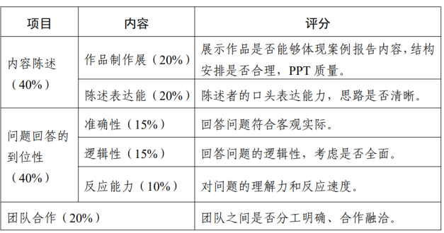 校赛答辩阶段,评分细则如下: