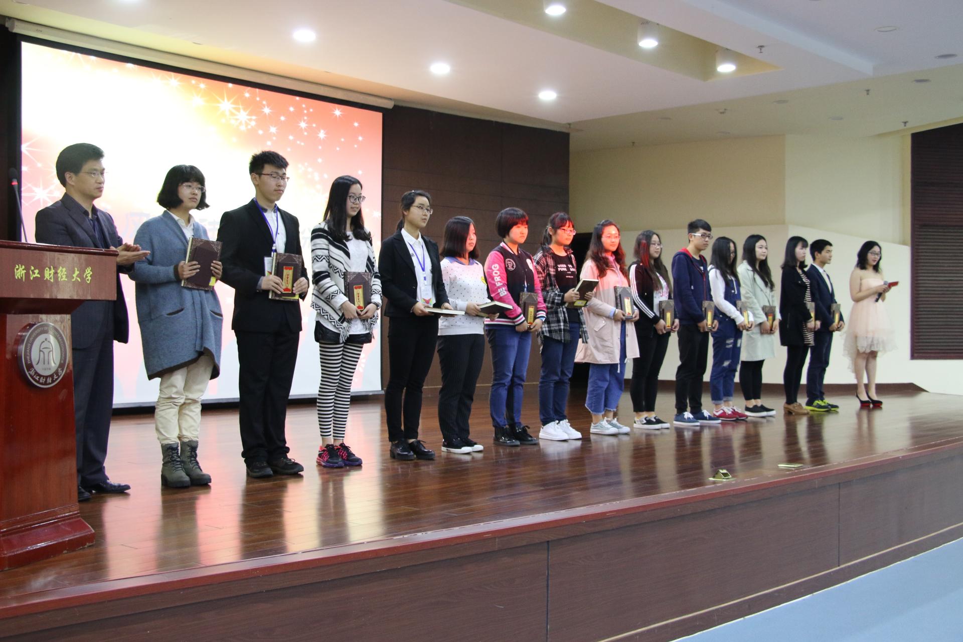 随后,学院对过去一学年中学风先进个人和优秀学风寝室进行了表彰。13工商专业1班的李鑫同学代表学风先进个人分享了他的学习秘诀,他指出,激励自己学习的动力是源于最初转专业的失败,他在沮丧之余进行了自我反思,他说:“我那时候反思之后明白了自己还不够优秀,而我的目标就是要不断去完善自己,把所想的付诸行动,并且把行动变成习惯,最后让优秀成为一种习惯。”13市营的谢玲娣同学作为优秀学风寝室的寝室长介绍了如何营造良好寝室学风的经验,她提到,寝室里每个人都在对彼此产生影响,每个人从一开始就有明确的目标,那就是要出国留学,因此背单词、准备考级考证便成了室友们每晚的任务清单,正是这样日复一日的坚持才有了她们今天这样的优秀学习寝风。
