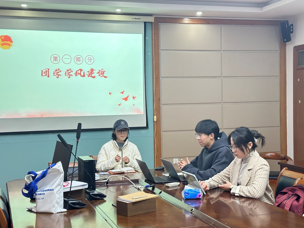 团委学生会学风建设大会暨负责人第三次例会。学院团委书记顾晗可老师,团委学生会主席团成员及团学各部门负责人参会。