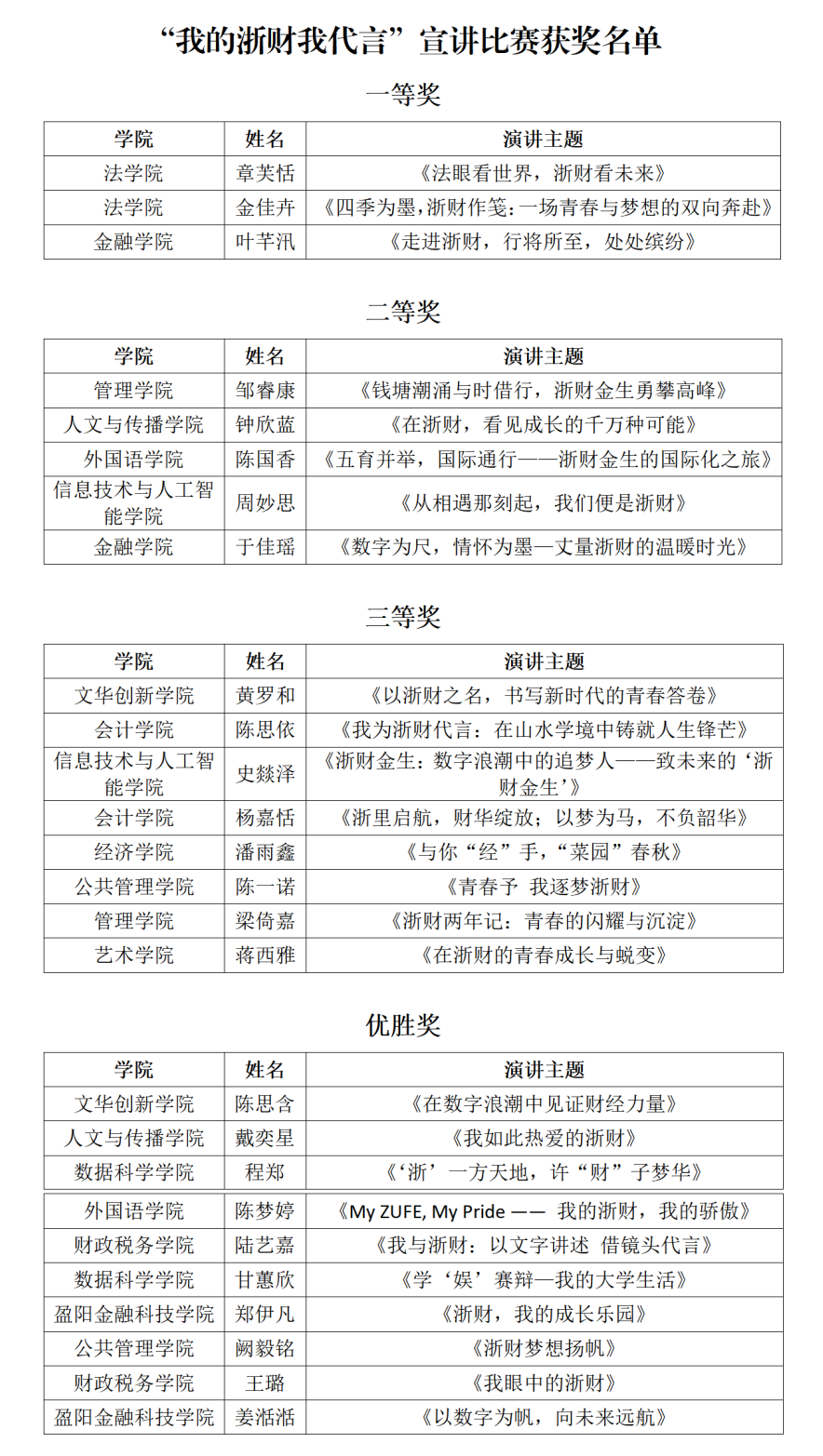 此次“我的浙财我代言”宣讲比赛成功实践了我校的创新招生宣传形式,彰显了浙财学生爱校荣校的情怀与担当,也展现了球神直播app