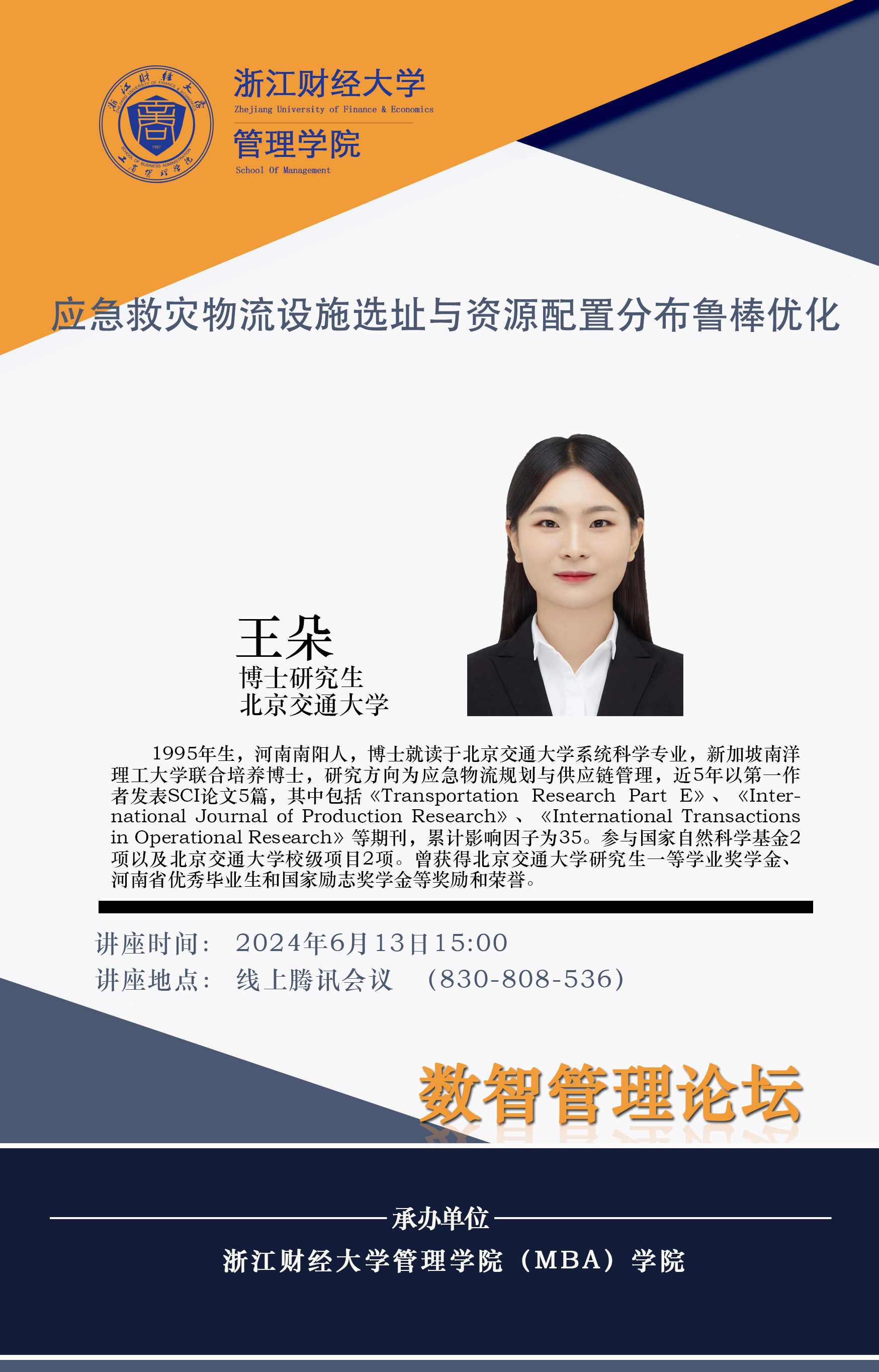 【讲座预告】王朵:应急救灾物流设施选址与资源配置分布鲁棒优化