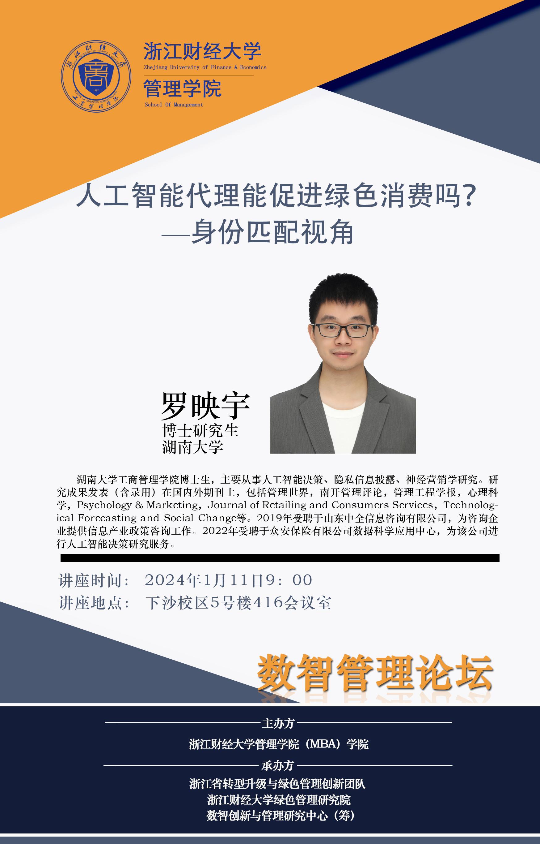 【院级研究中心讲座预告】罗映宇:人工智能代理能促进绿色消费吗?——身份匹配视角
