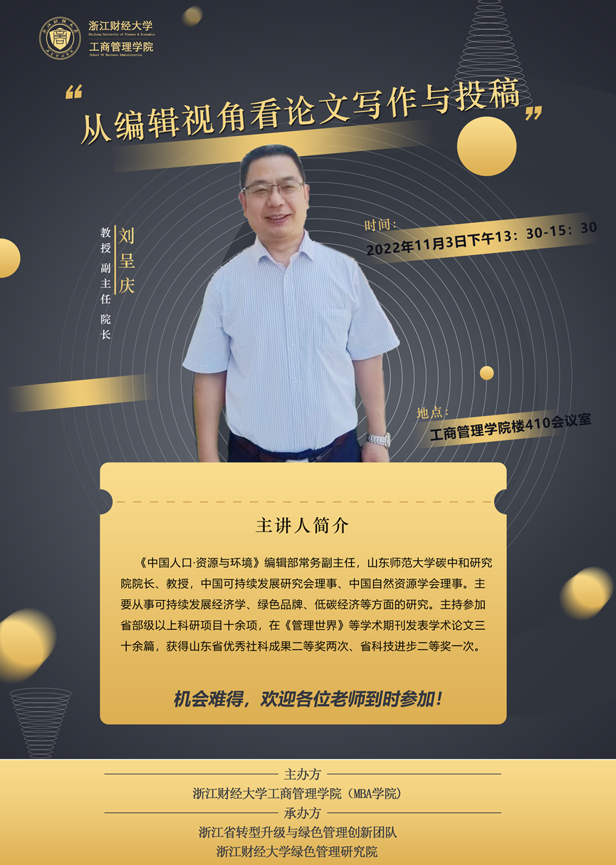 【讲座预告】刘呈庆教授:从编辑视角看论文写作与投稿
