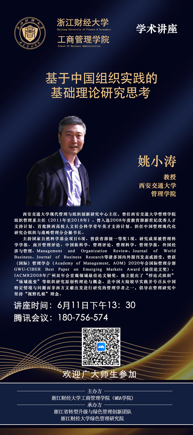 【讲座预告】姚小涛教授:基于中国组织实践的基础理论研究思考