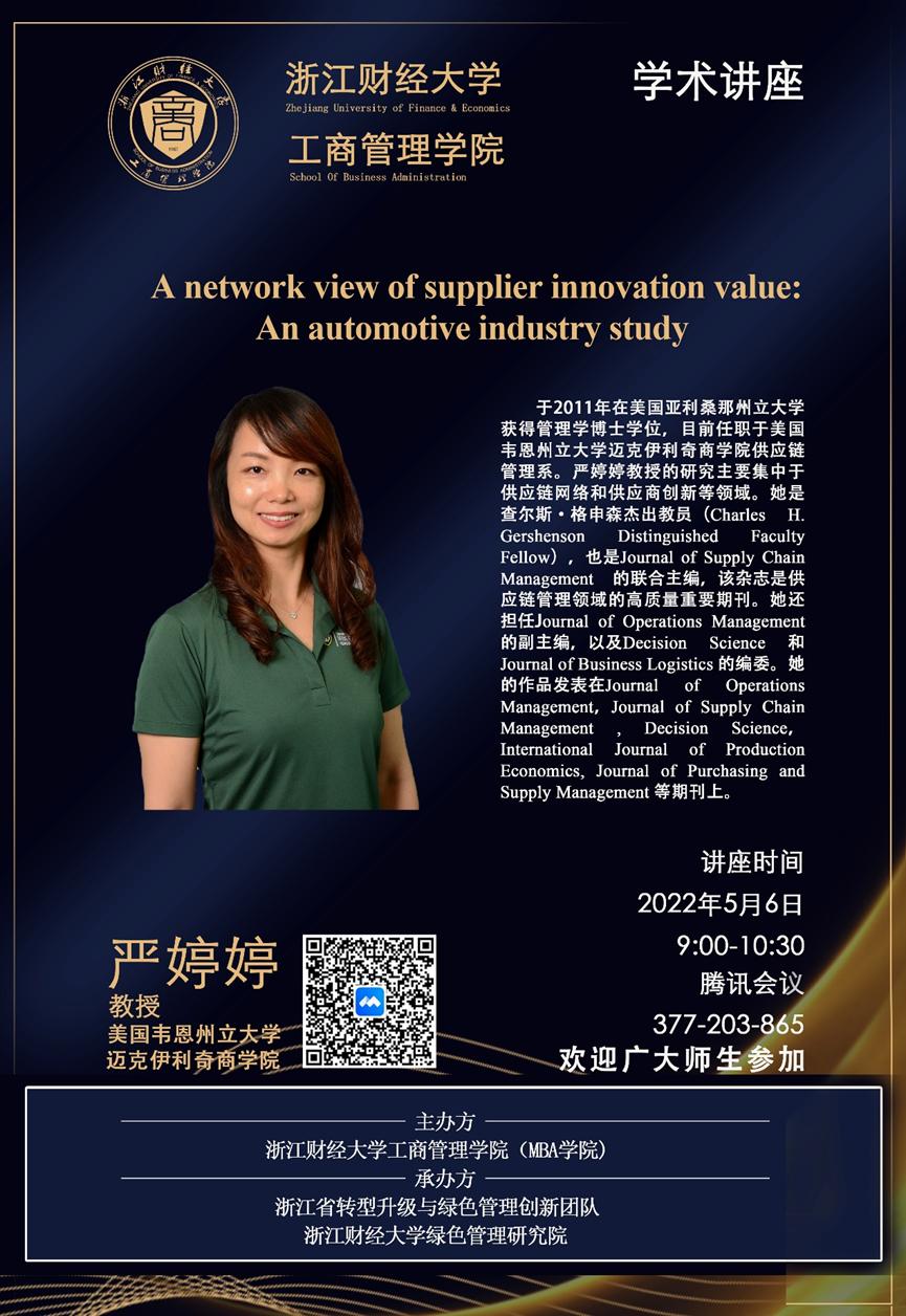 【讲座预告】严婷婷教授:A network view of supplier innovation value: An automotive industry study