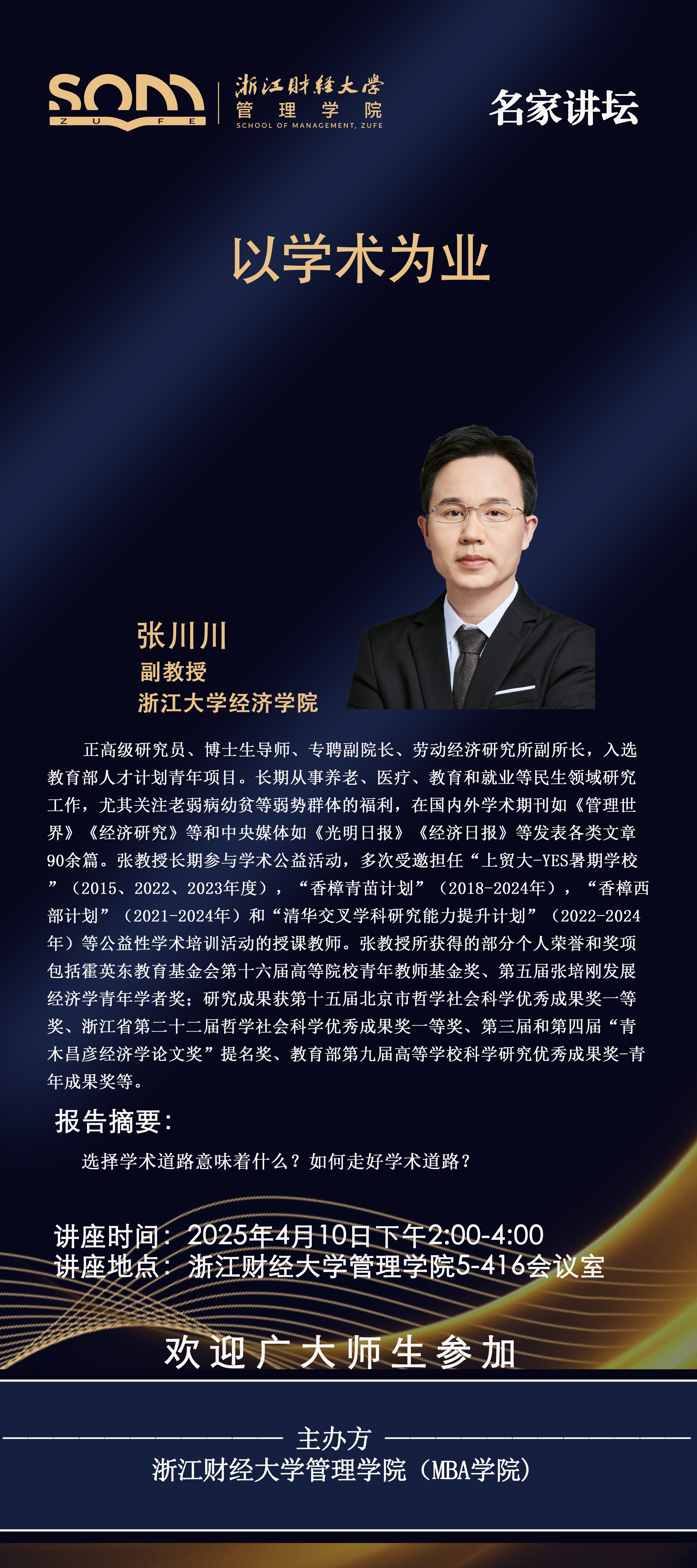 球神直播 新财经战略系列学术活动2025年第13期【名家讲坛】张川川:以学术为业