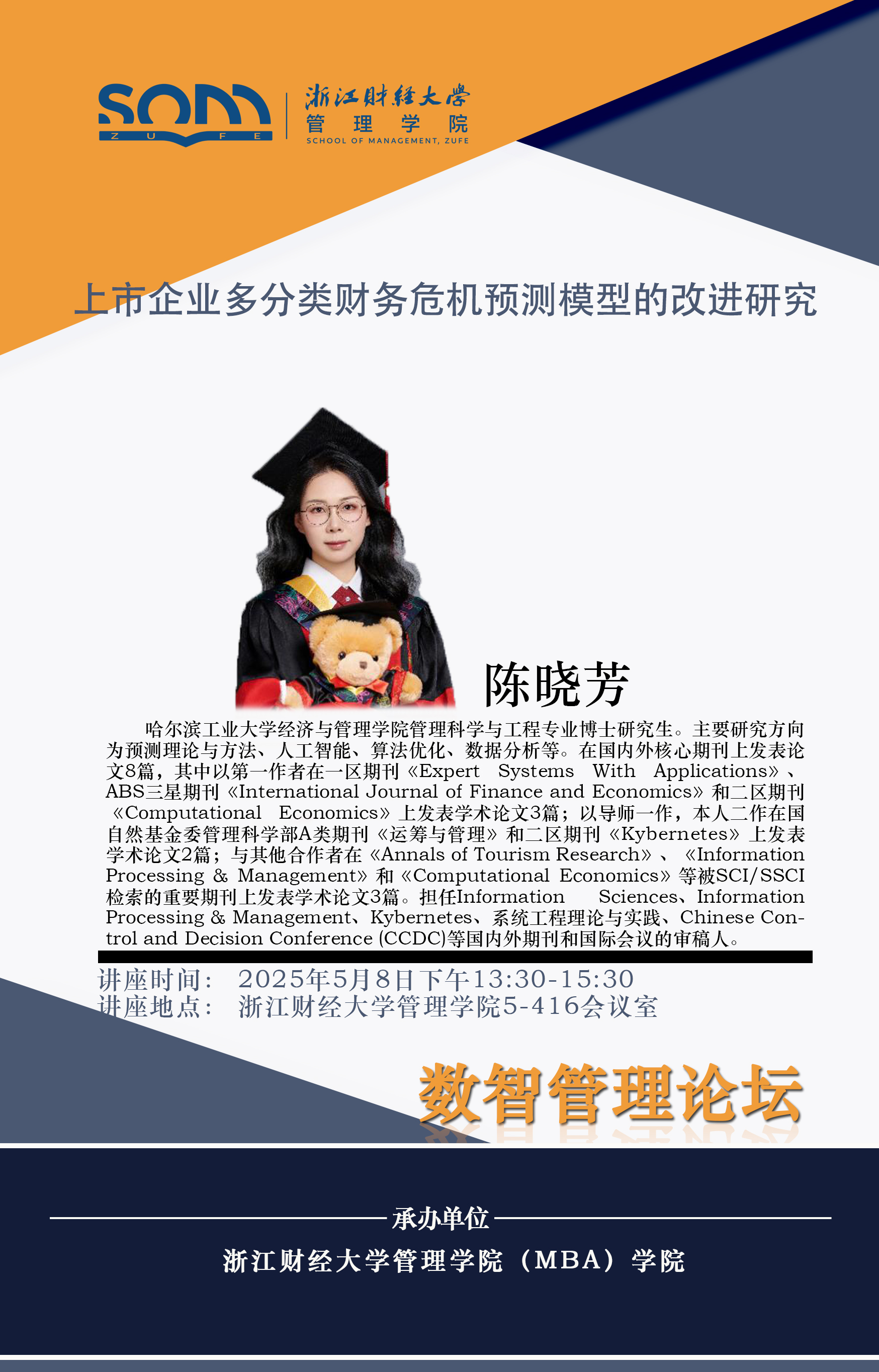 球神直播 新财经战略系列学术活动2025年第27期【学术报告】陈晓芳:上市企业多分类财务危机预测模型的改进研究