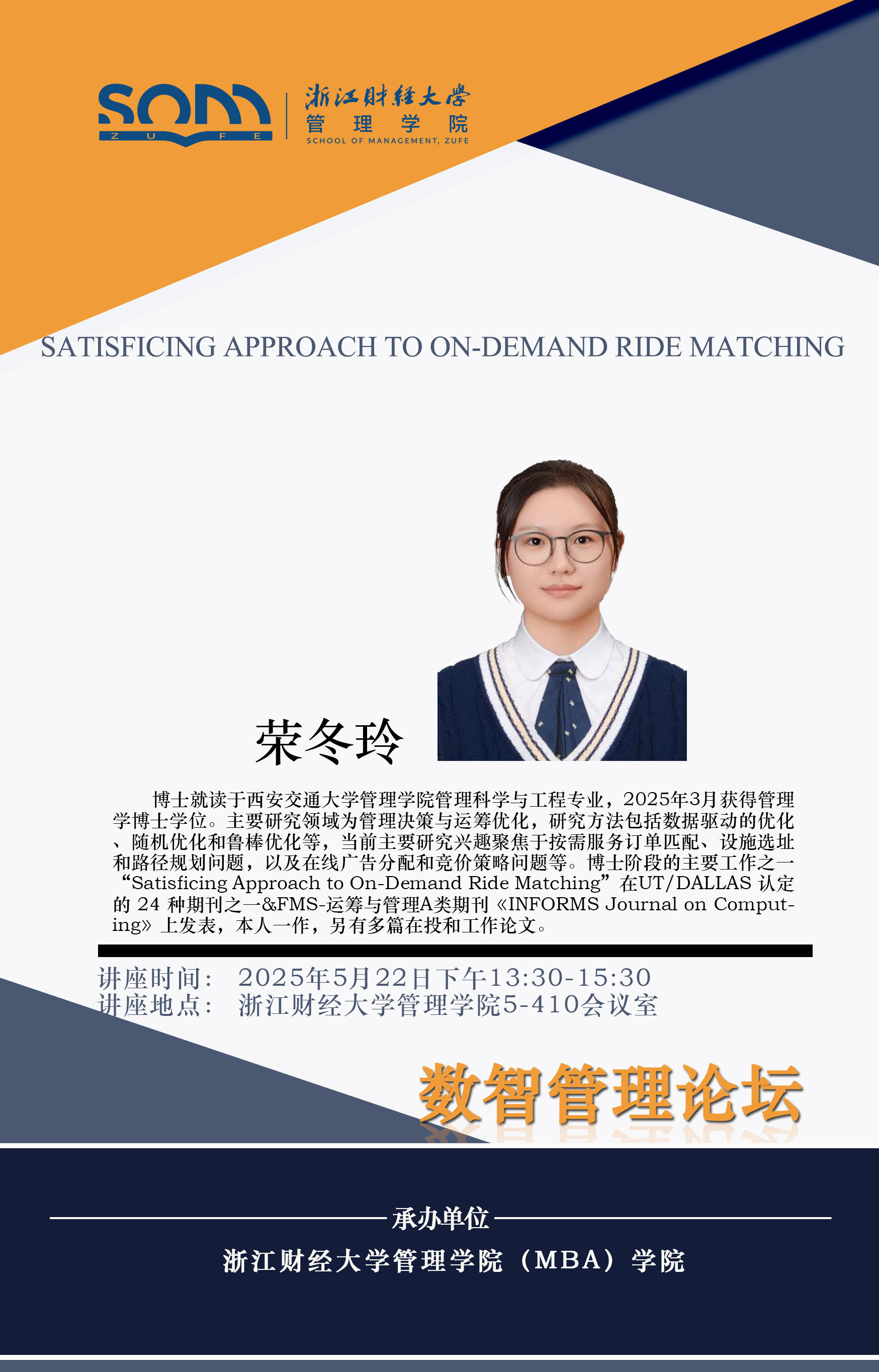 球神直播 新财经战略系列学术活动2025年第37期【学术报告】荣冬玲:Satisficing Approach to On-Demand Ride Matching