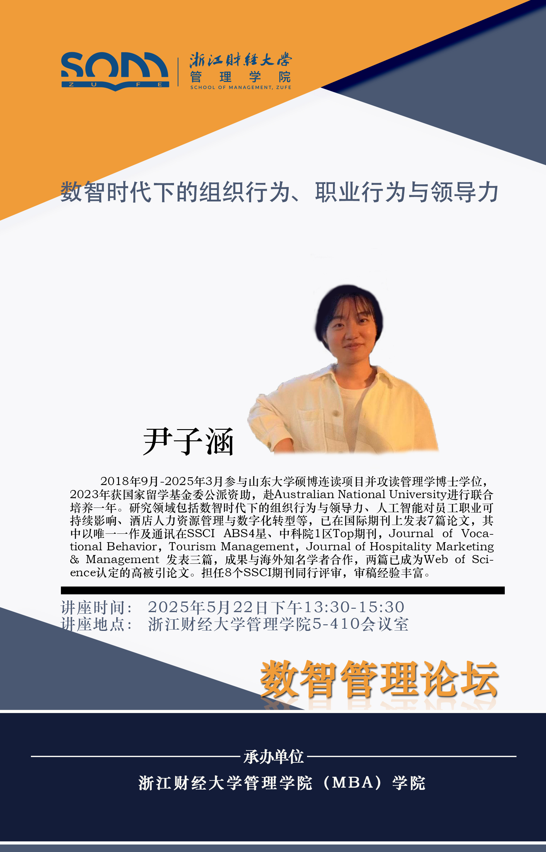 球神直播 新财经战略系列学术活动2025年第38期【学术报告】尹子涵:数智时代下的组织行为、职业行为与领导力