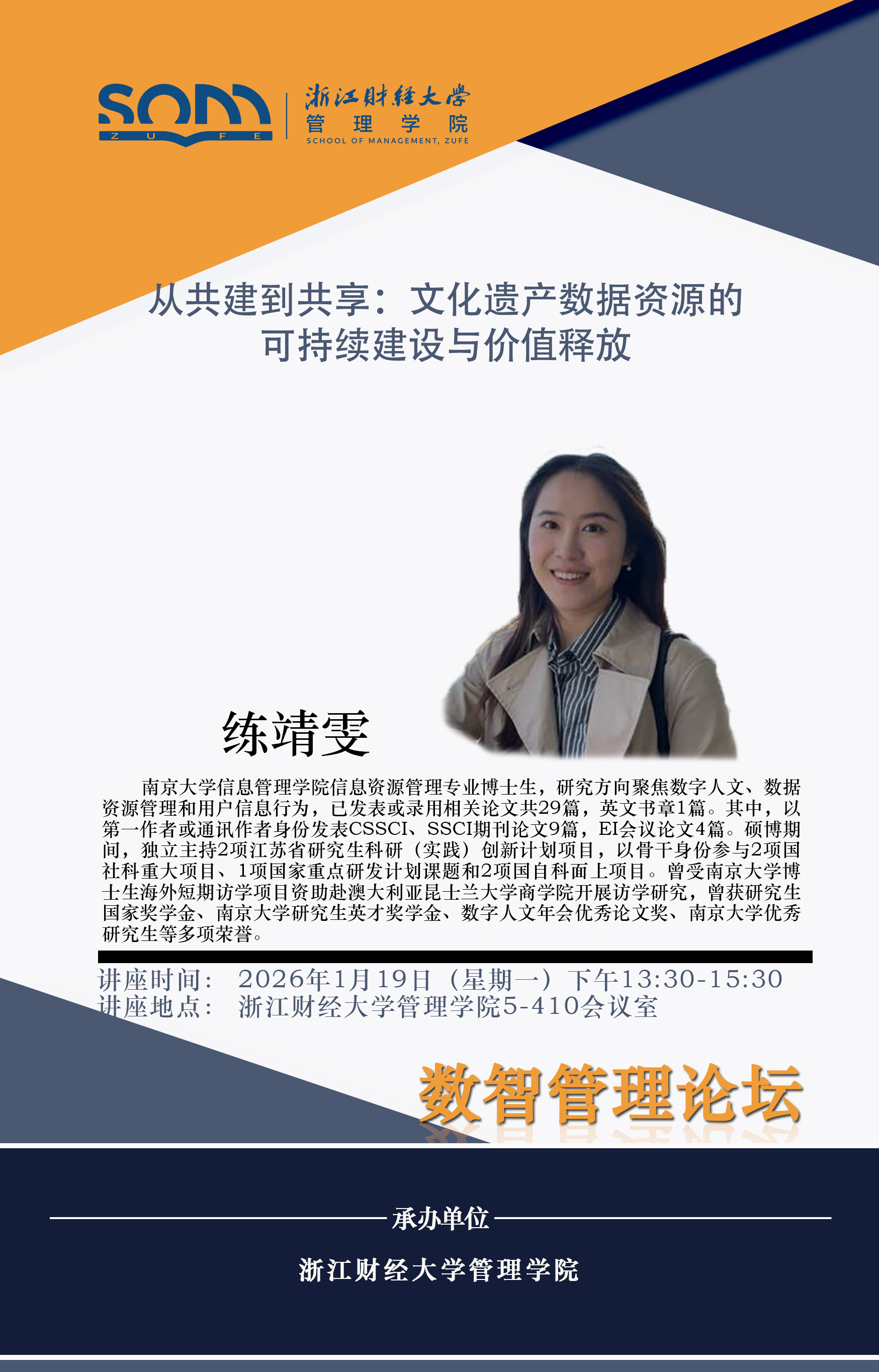 球神直播 新财经战略系列学术活动2026年第3期【学术报告】练靖雯:从共建到共享:文化遗产数据资源的可持续建设与价值释放