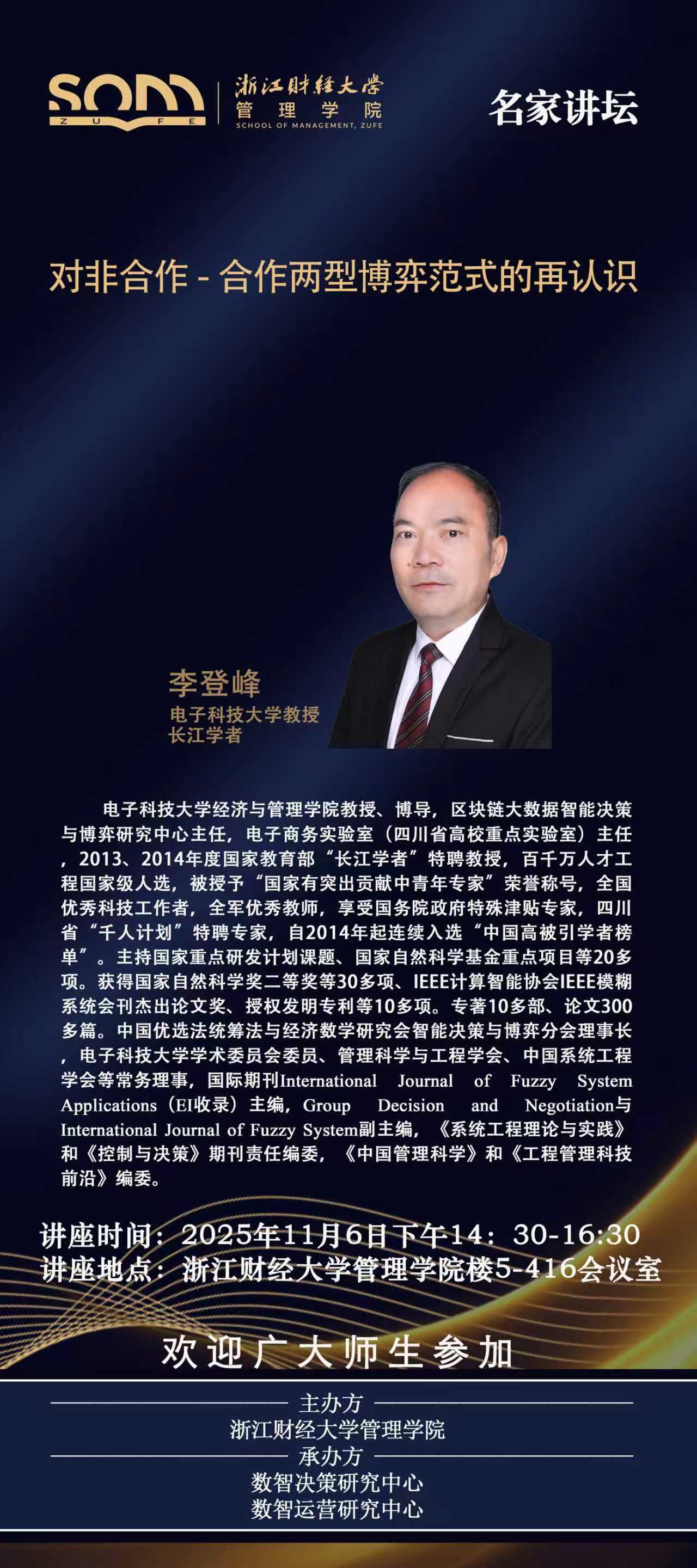 管理学院新财经战略系列学术活动2025年第57期【名家讲坛】李登峰:对非合作-合作两型博弈范式的再认识