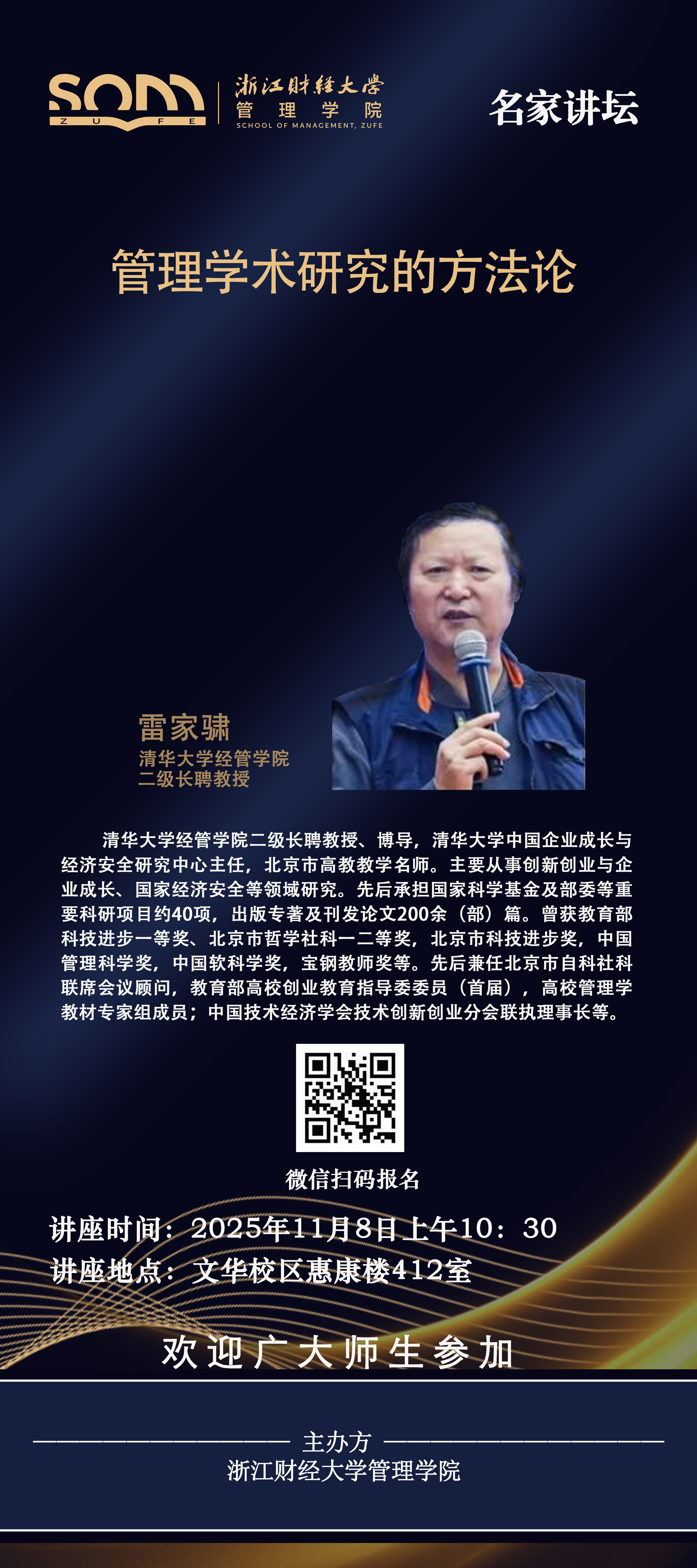 管理学院新财经战略系列学术活动2025年第58期【名家讲坛】雷家骕:管理学术研究的方法论