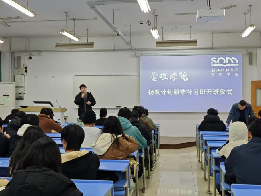 扬帆计划朋辈补习班举行开班仪式,学院教学副院长张雷、学办主任李桢、团委副书记陈蓓蓓、辅导员刘军华及全体补习学生参加仪式。活动由球神直播