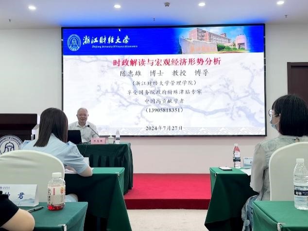 在第二天课程中,浙江财经大学陈惠雄教授为学员们带来了“时政解读与宏观政治经济形势分析”的专题讲座。陈老师以其深厚的学术功底和敏锐的洞察力,对当前国内外政治经济形势进行了全面剖析,为学员们提供了广阔的视野,给学员们带来了深刻的思考。