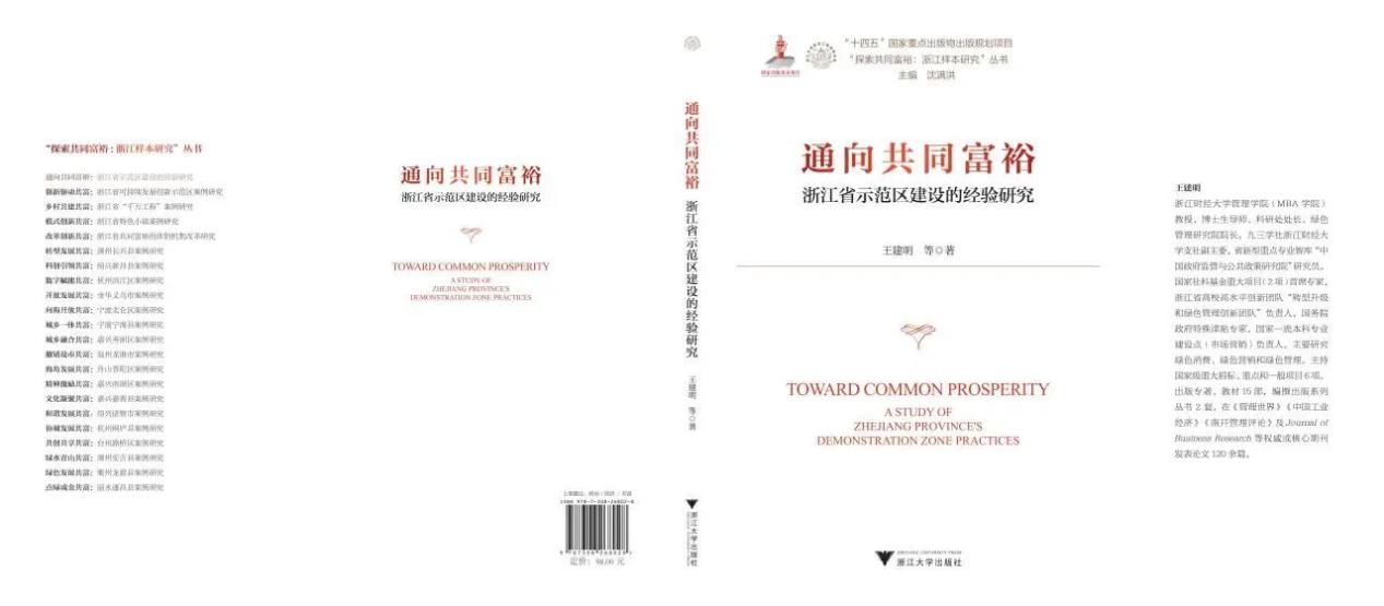 由浙江财经大学管理学院教授、绿色管理研究院院长、博士生导师王建明领衔撰写的著作《通向共同富裕:浙江省示范区建设的经验研究》正式由浙江大学出版社出版。本书是浙江省文化研究工程重点课题“共同富裕的探索与实践——浙江经验总论”的最终研究成果,也是省“八八战略”研究院的重要研究成果。