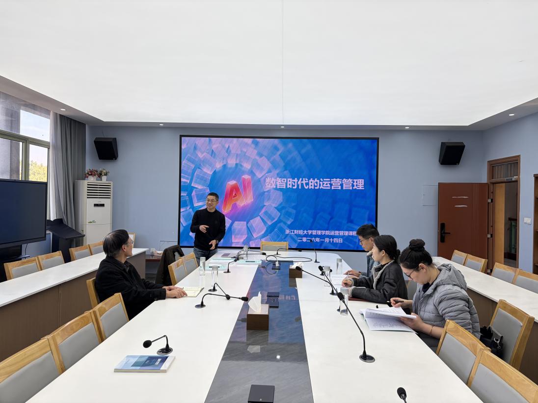 2026年1月14日下午,运营管理课程组在学院416会议室召开“数智时代的运营管理”课程改造研讨会。目的是落实“新财经战略”及“AI+”专业改造提升计划,推动运营管理课程教学内容与教学模式的数智化升级。运营管理课程组全体教师参加了本次会议。