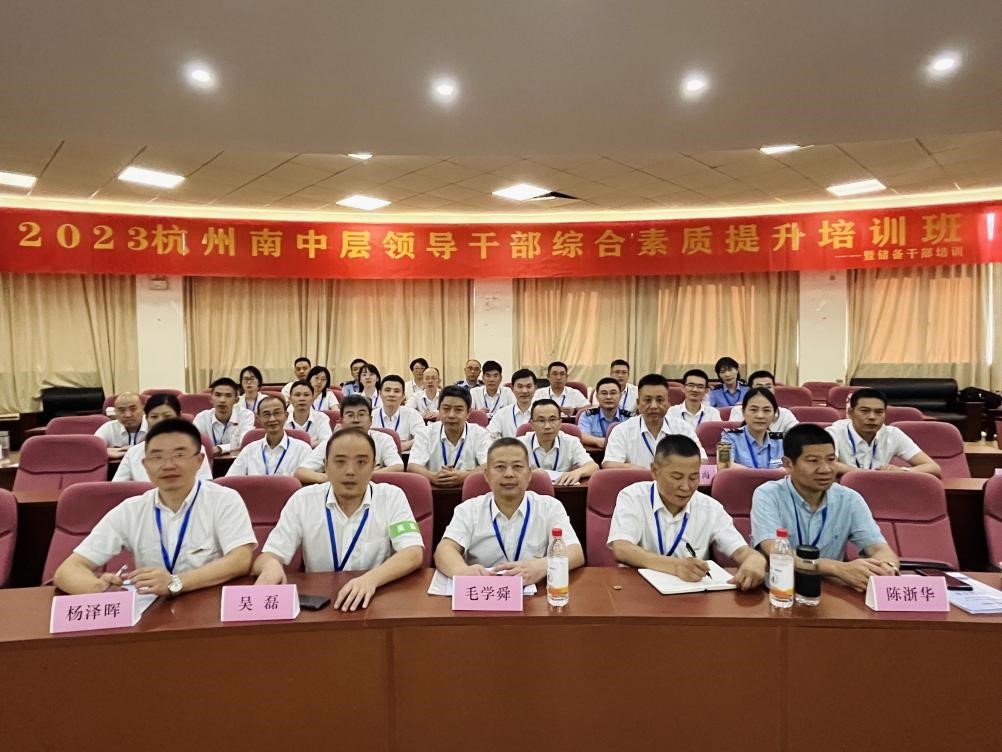 为进一步提高杭州南管理中心各梯队领导的综合素质,提升领导力和管理水平,7月12日,在浙江财经大学工商管理学院217报告厅举办了一场别开生面的领导干部综合素质培训班。本次培训班是杭州南管理中心与我校签署校企合作五年战略规划的第三年,受到了我院领导的高度重视。今年培训按照培训对象分批培训,第一期培训对象为杭州南管理中心各梯队领导干部,培训时间为7月12日和7月13日两日,由杭州南各部门领导干部37人组成,EDP中心陈飘飘和蔡琰全程跟班,我院学办主任胡星平在本次培训的开班仪式上作了动员讲话。