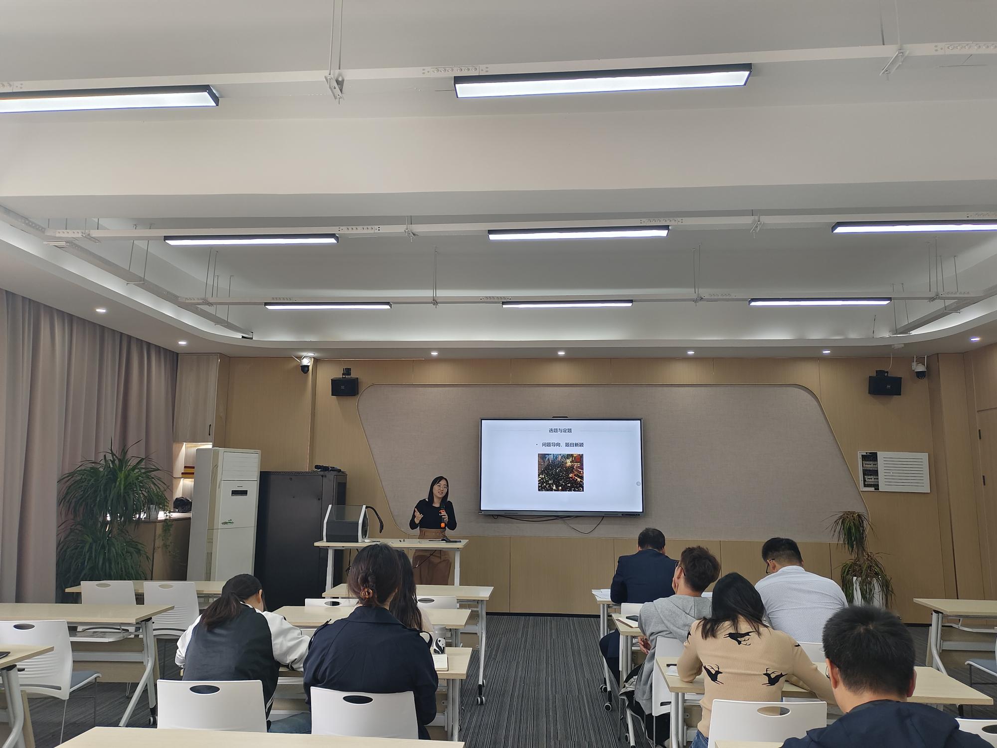 之后,五位老师依次分享自己的申报经验。裴玲玲教授从注意事项、选题方向的把握以及标题的选择与设计方面分享了国家社科项目申报经验,并着重阐述了“跨界+融合”的选题方法。丁雯博士从三年来申报国自科青年项目的经历中,总结了关于选题、研究背景以及文献综述撰写的相关经验,并给出具体可行的建议。邓年奇博士基于申报项目时专家给出的建议进行分享,并详细讲述了自己根据专家建议完善申报书的过程。卢团团博士从选题与定题、提高审美以及学会包装三个方面分享自己申报国家自科项目心得。赵雨菡博士提出申报课题要“胆欲大而心欲小”,既需要大胆破题,也需要细致地梳理逻辑和文字。
