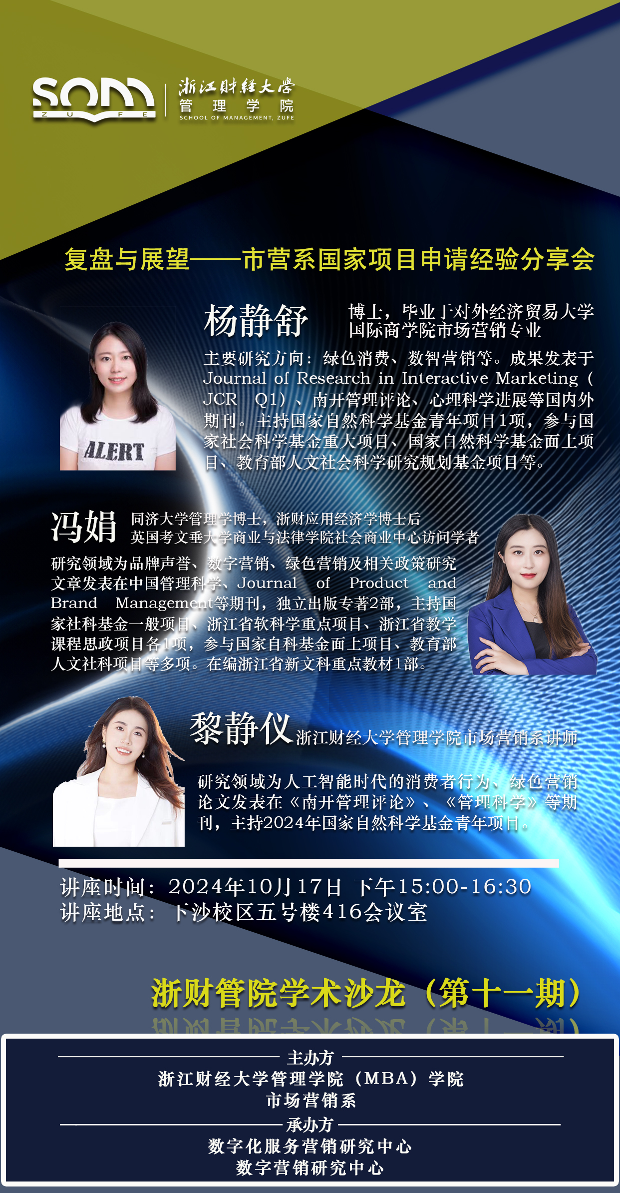 的科研工作。2024年10月17日下午,由市场营销系主办,数字营销研究中心和数字服务营销研究中心承办的“复盘与展望----国家项目获得者经验分享活动”在球神直播