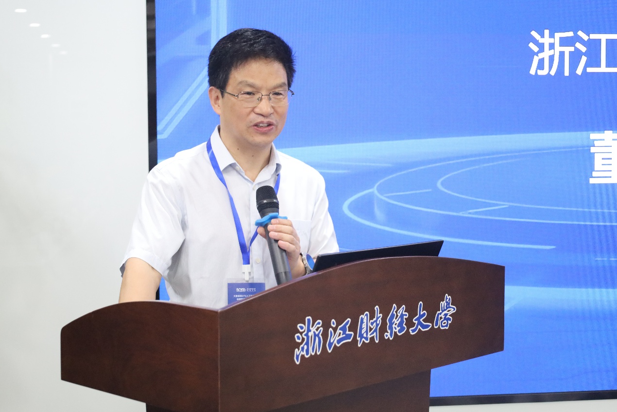 开幕式由浙江财经大学副校长董进才教授致辞。董进才教授表示,当前浙江省正大力推动人工智能技术创新与产业应用,学校坐落于“数字之都”杭州,对人工智能领域的学术研究、技术突破与人才培养理应提出更高要求。大数据作为驱动产业变革的核心力量,已深刻改变企业的经营决策模式、生产运营流程,同时也对企业的数据治理能力、数字化转型速度提出了全新要求。在技术融合层面,大数据与人工智能技术两者深度融合、落地生根,正为经济高质量发展提供可复制、可推广的实践范式。希望与会各方借助本次会议加强交流学习、深化合作探索,共同为人工智能与大数据领域的发展贡献智慧与力量。