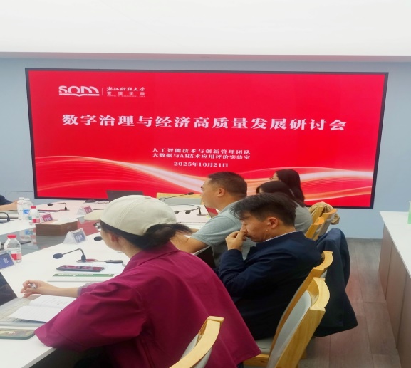 10月21日下午,“数字治理与经济高质量发展”研讨会在管理学院416会议室成功举行。本次研讨会由人工智能技术与创新管理团队、大数据与AI技术应用评价实验室共同承办,与会嘉宾围绕数字治理与经济发展的前沿议题展开了深入交流。此次研讨会由管理学院董直庆院长主持,特邀《中山大学学报(社科版)》《财经论丛》《浙江学刊》等多家国内外知名学术期刊的主编和编辑参与研讨。