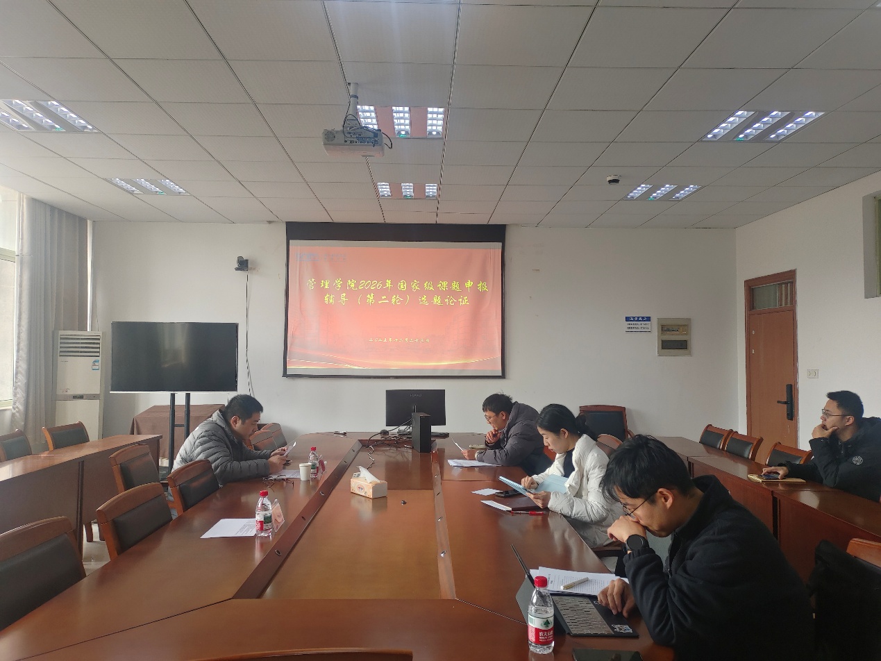 为持续优化2026年国家级课题申报质量,聚焦选题精准度与研究深度,助力教师攻克申报难点,2025年12月23日下午,管理学院在学院楼310会议室顺利召开国家级课题申报辅导(第二轮)选题论证会。本次活动特邀南京大学张骁教授担任指导专家,前期参与第一轮论证的部分教师及新增拟申报课题教师共同参与本次论证。
