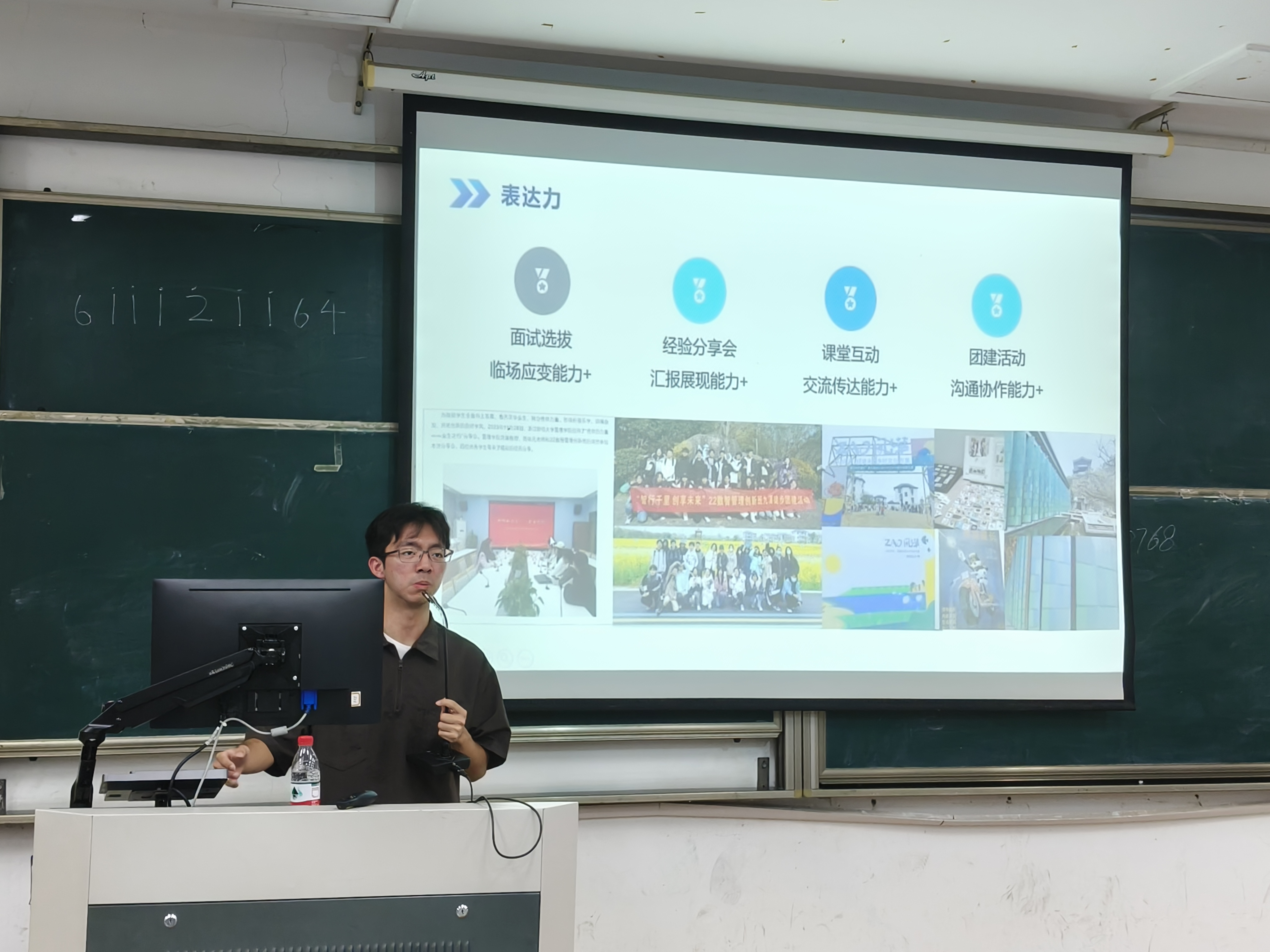 邹睿康学长以个人经历为鉴,分享了在数智管理创新班的学习之旅,他围绕学习力提升、表达力增强和实践力深化三个方面,详细阐述了在班级中的成长与收获。他热情地号召球神直播