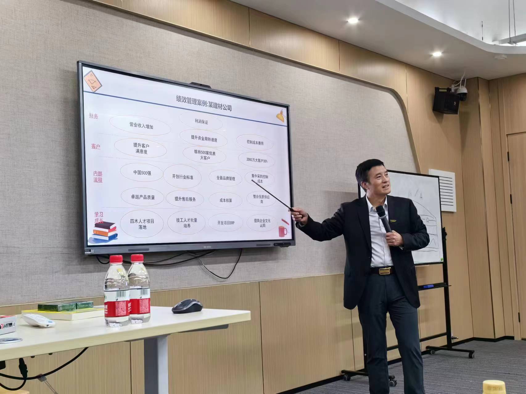 马同华先生以游戏开场,通过游戏来让同学们理解绩效管理的精髓。随后,马总结合千年舟的绩效管理实践,介绍了绩效管理的核心流程,主要包括目标设定与沟通、持续跟进与辅导、绩效评估与反馈,以及结果运用与改进。他强调,绩效管理一定要将企业战略结合起来。马总借用平衡记分卡框架,向同学们展示了千年舟如何从战略,到战略地图,再到公司级指标、部门级指标以及个人指标的全过程。