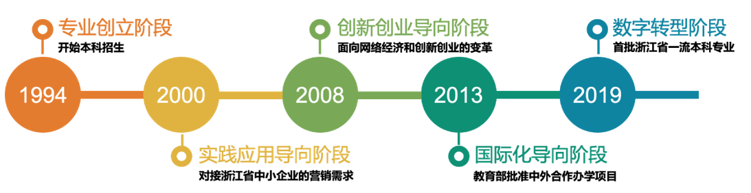 浙江财经大学市场营销专业创建于1994年,依托工商管理国家一流学科,一级学科硕士学位点、MBA学位点,专业排名全国位列前4.08%,于2020年入选国家一流本科专业建设点。专业建有省级实验示范中心4个,省财政支持实验室1个,教育部产学合作协同育人项目7个,校外实践基地44个。有国家社科基金重大项目首席专家1人,省级人才工程2人,师德先进个人2人,中国高校市场学研究会常务理事2人、理事10人。基于强势学科平台、实践平台和师资队伍,形成了“国际化+大财经+数字化”人才培养优势。面向“互联网+”和国际化浪潮,对接浙江经济社会发展“数字经济、智能制造、互联网金融”等高端产业需求,培养具有国际视野和财经特色的数字型营销人才。