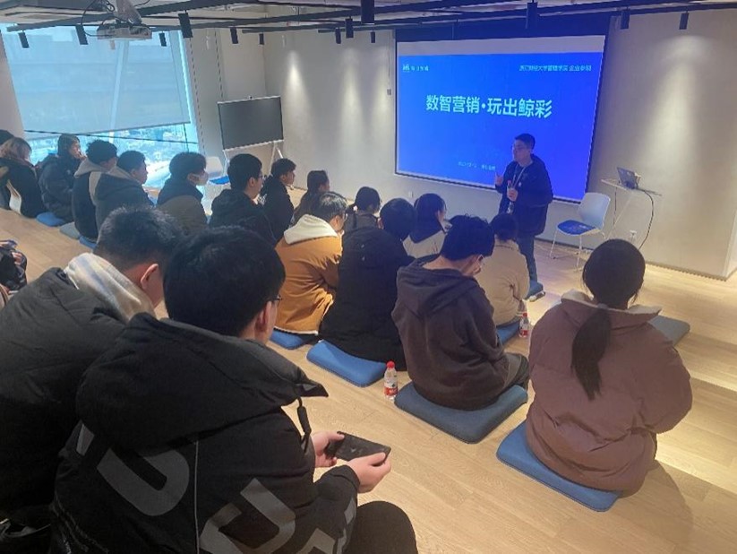 销售管理课的同学们来到每日互动公司(个推)进行参观。在公司高级副总裁刘宇的介绍引导下,深入地了解了公司的品牌理念以及技术创新,并在实地参观中近距离地感受到了科技领域在当下的蓬勃发展,加深了同学们对于数智科技产业的认识。