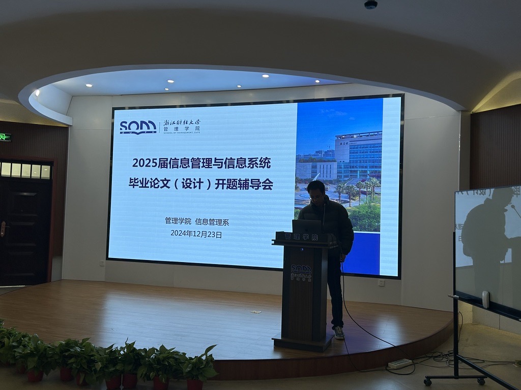 信息管理系在学院217会议室举行2025届信管专业毕业论文(设计)开题辅导讲座。本次讲座由信管专业负责人隆清琦教授做报告,信管系主任王婉茹老师主持,信管系青年教师和全体2025届信管毕业生参加了本次会议。