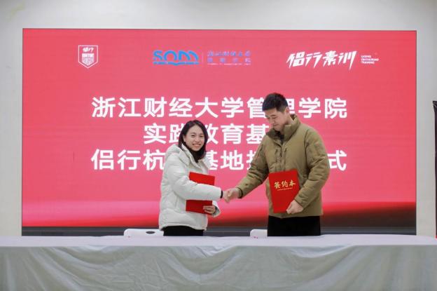 12月27日上午,浙江财经大学管理学院与侣行(杭州)素训基地在杭州临平举行了“实践教学基地”签约及授牌仪式。侣行素训基地总经理王旷涵及其团队,与学院市场营销系黎静仪老师及师生代表共同出席了此次仪式。