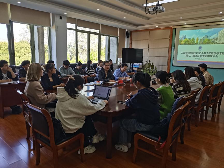 (MBA学院)在410会议室举行2022-2023学年秋学期国内、国外研究生期中座谈会。学校督导组成员王力教授和国内、国外研究生代表20余人参加了本次会议。会议由工商球神直播