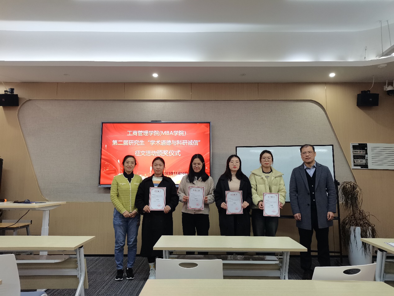 (MBA学院)于2023年10月举办了第二届”学术道德与科研诚信“征文活动。11月17日下午,本次征文活动颁奖仪式在学院楼411教室举行。学院副院长戴维奇教授、研究生秘书徐璐老师以及全体获奖学生参加了活动。